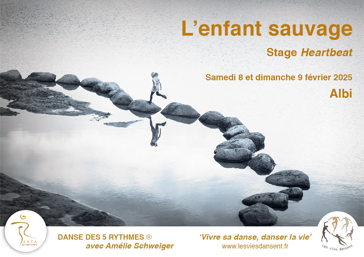 L'enfant sauvage est cette force en nous reliée à notre source innocente, libre et instinctive. Il est la porte restée ouverte sur la fraîcheur de la découverte, le royaume du tout possible, la puissance de l'imaginaire, le plaisir de la surprise, l'insouciance du geste spontané. Sur l’espace premier d’un monde sensible où le corps et le coeur ne sont pas encore normés et découvrent joyeusement leurs potentialités d’exploration et d’expression. La danse est cette force qui permet de garder l'enfant sauvage vivant en nous.